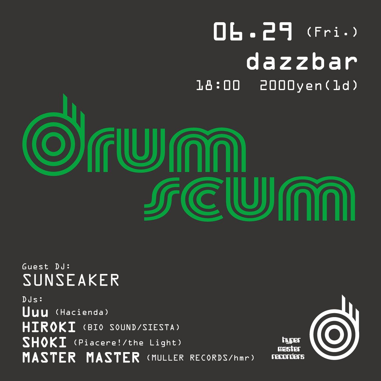 静岡テクノの本拠地dazzbarより発信されるコアでカルトなテクノ・パーティー、drumscumの第4回。