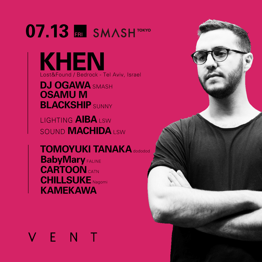 またDJ OGAWAは、Hernan Cattaneoからもその才能を評価され、2年連続でアルゼンチンツアーを成功させるなど多岐にわたる活躍をみせる中、”SMASH”がついに東京進出を果たす!記念すべき初回にはGuy Gerber、Guy J、Shlomi Aber、Guy Manzurなど数々のスターを生み出し続けるイスラエルより27歳の神童、KHENをゲストに迎える。この若き天才が作るサウンドは、2000年代前半のプログレッシブハウスとテクノを融合したような独自のグルーヴを兼ね備えており、エモーショナルで魅惑的、ジャンルを超越していると高く評価されている。