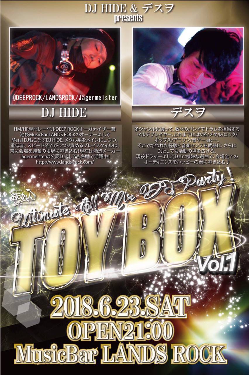 今話題のバンド、TAKE NO BREAKなどで活動中のドラマーデスヲと、メタルDJレーベルDEEPROCK代表のDJ HIDEがタッグを組み、ついに夢の実現!!