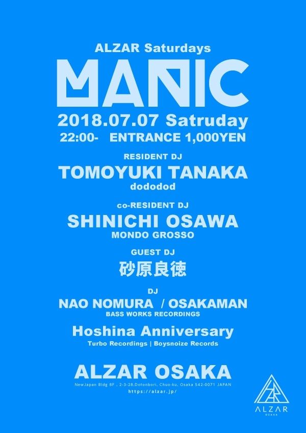 FPMの田中知之がストイックにダンスミュージックと向き合うことを目的としてスタートさせた別プロジェクトdododod(ドドドッド)オーガナイズによるパーティー "ALZAR SATURDAYS "『MANIC』。待望の第3回目の開催が7月7日(土)に決定。