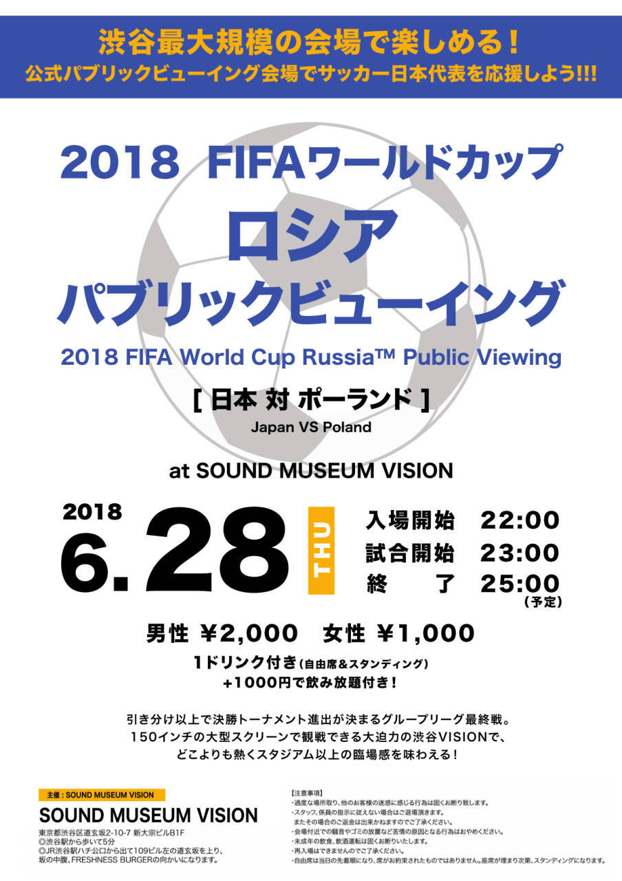 渋谷最大規模の会場で楽しめる!公式パブリックビューイング会場でサッカー日本代表を応援しよう!!!
