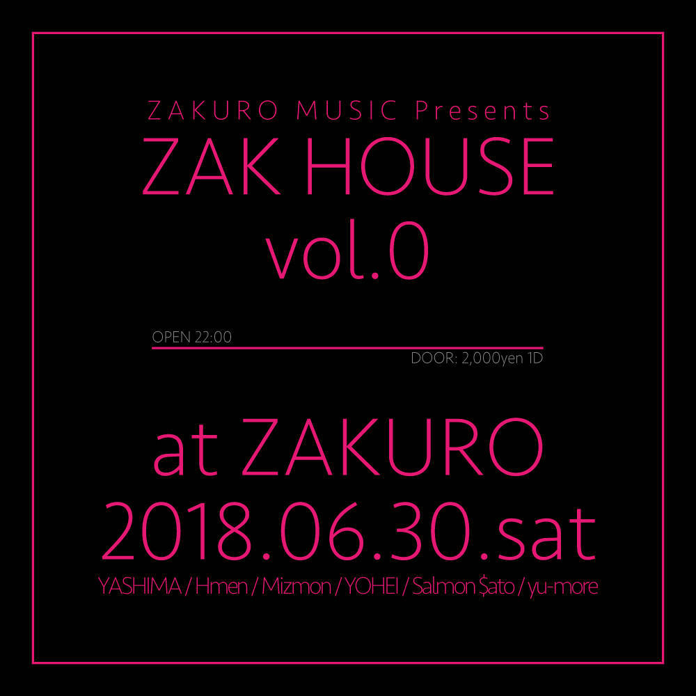 様々なコンテンツを取り入れ、そして最近では#zakuro_musicとしてシーンを確立したZAKUROが新たに発信するTechno / House party【ZAK HOUSE】が6月30日に開催決定!!!
