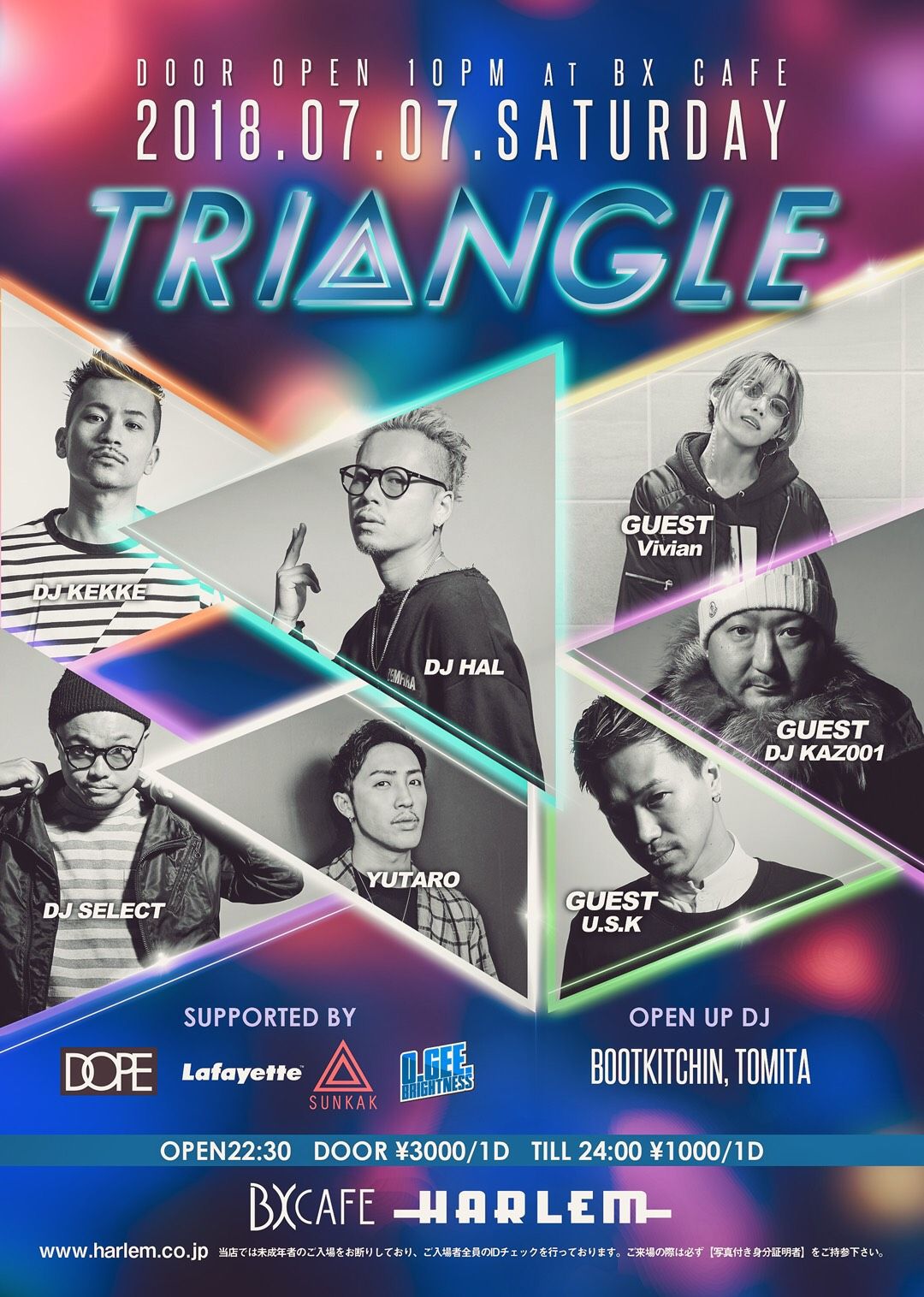 HAZIME, WATARAI, KOYA, KANGO, SAFARI and SAH, HARLEM Top 6 DJs who are basis of HARLEM's music chamber are getting together to destroy the main room on Saturday night.