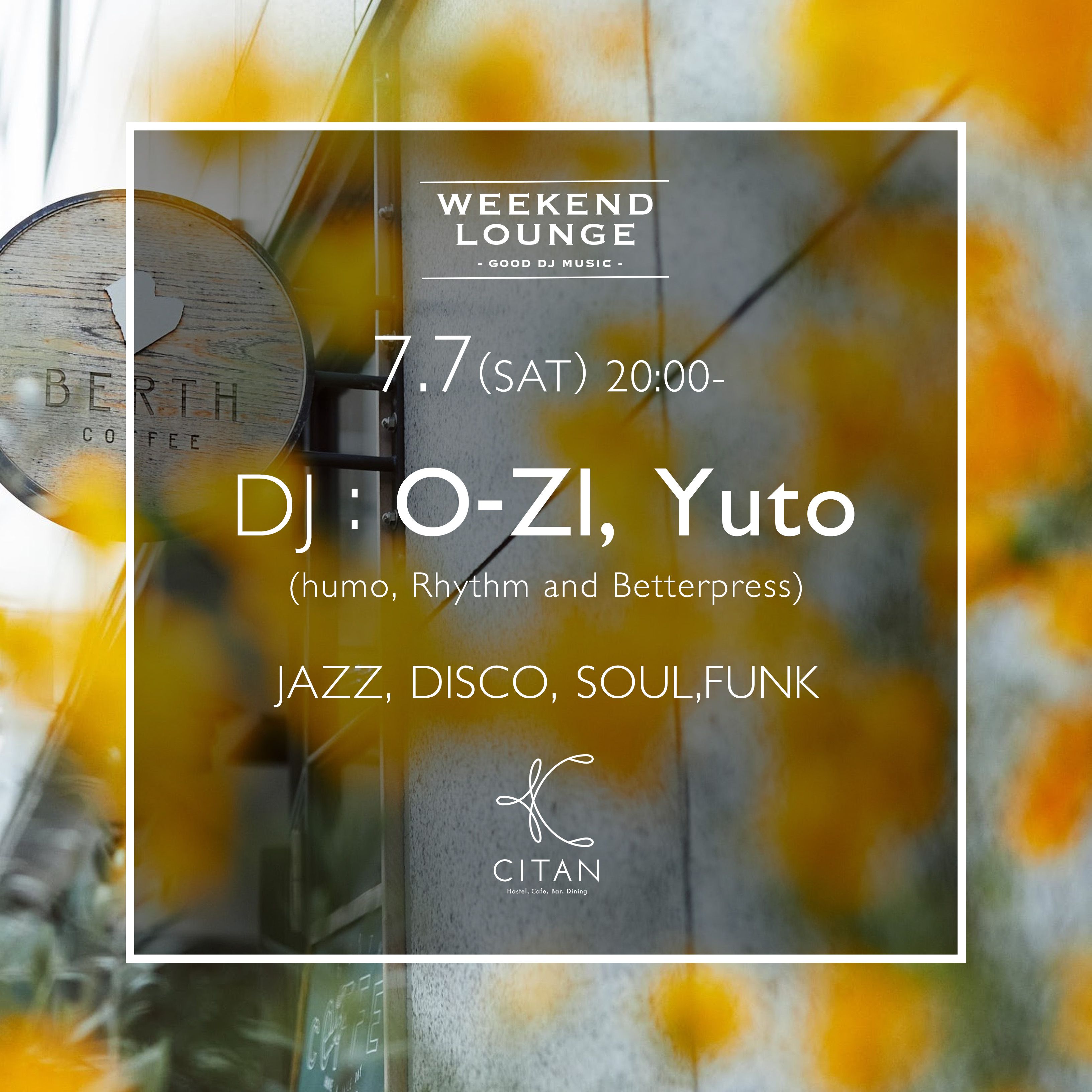 2018.07 07 JUL Weekend Lounge DJs DISCO JAZZ FUNK SOUL 0 Shares Facebook Twitter google Line DATE: 2018-07-07 SAT OPEN: 08:00 VENUE: PRICE: ENTRANCE FREE LINE UP: O-ZI, YUTO(humo / Rhythm and Betterpress) 7/7 (SAT) DJ:O-ZI, YUTO(humo / Rhythm and Betterpress) GENRE:JAZZ, DISCO, FUNK, SOUL https://soundcloud.com/user-124894887/180526-o-zi