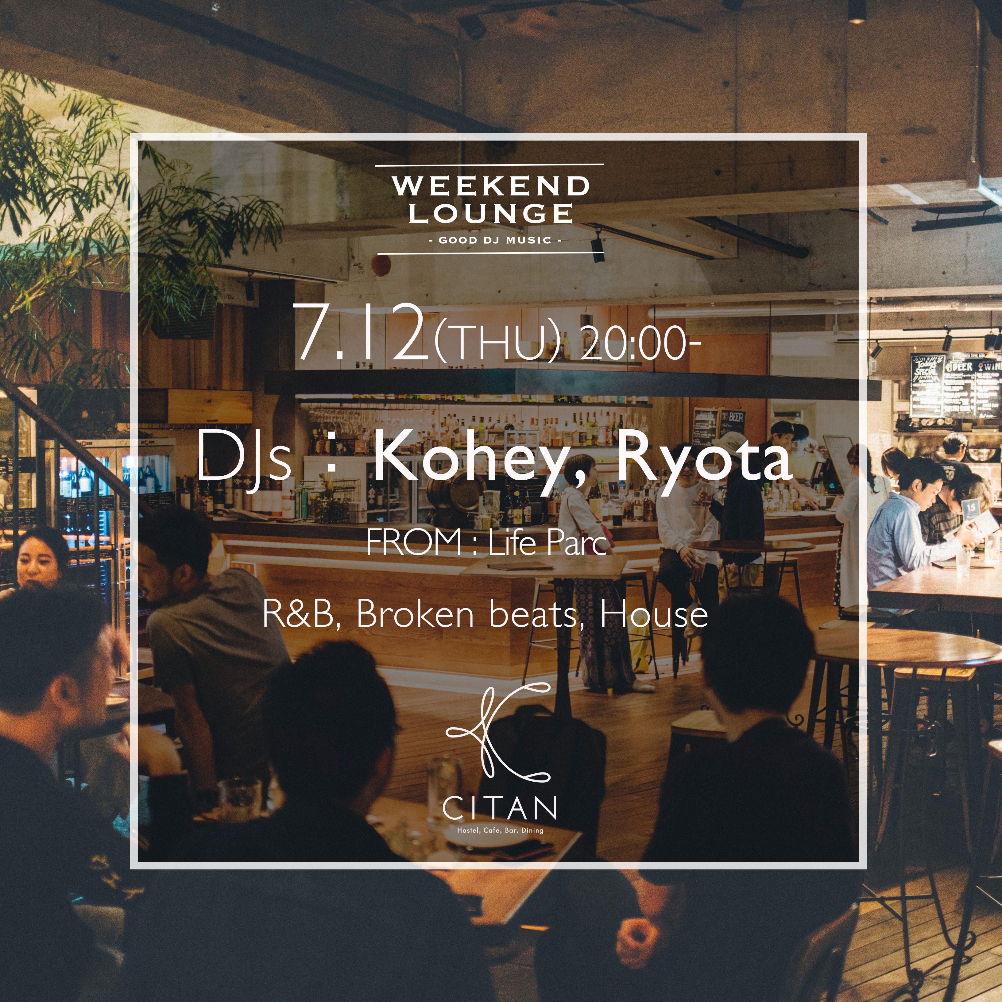 2018.07 12 JUL Weekend Lounge DJs DISCO JAZZ FUNK SOUL 0 Shares Facebook Twitter google Line DATE: 2018-07-12 THU OPEN: 08:00 VENUE: PRICE: ENTRANCE FREE LINE UP: Kohey, Ryota 7/12 (THU) DJ:Kohey, Ryota GENRE:HOUSE, DISCO, R&B, BREAKEBEATS SPEAKEASY TYO:https://m.facebook.com/SpeakeasyTYO/ Life Parc:http://instagram.com/lifeparc_