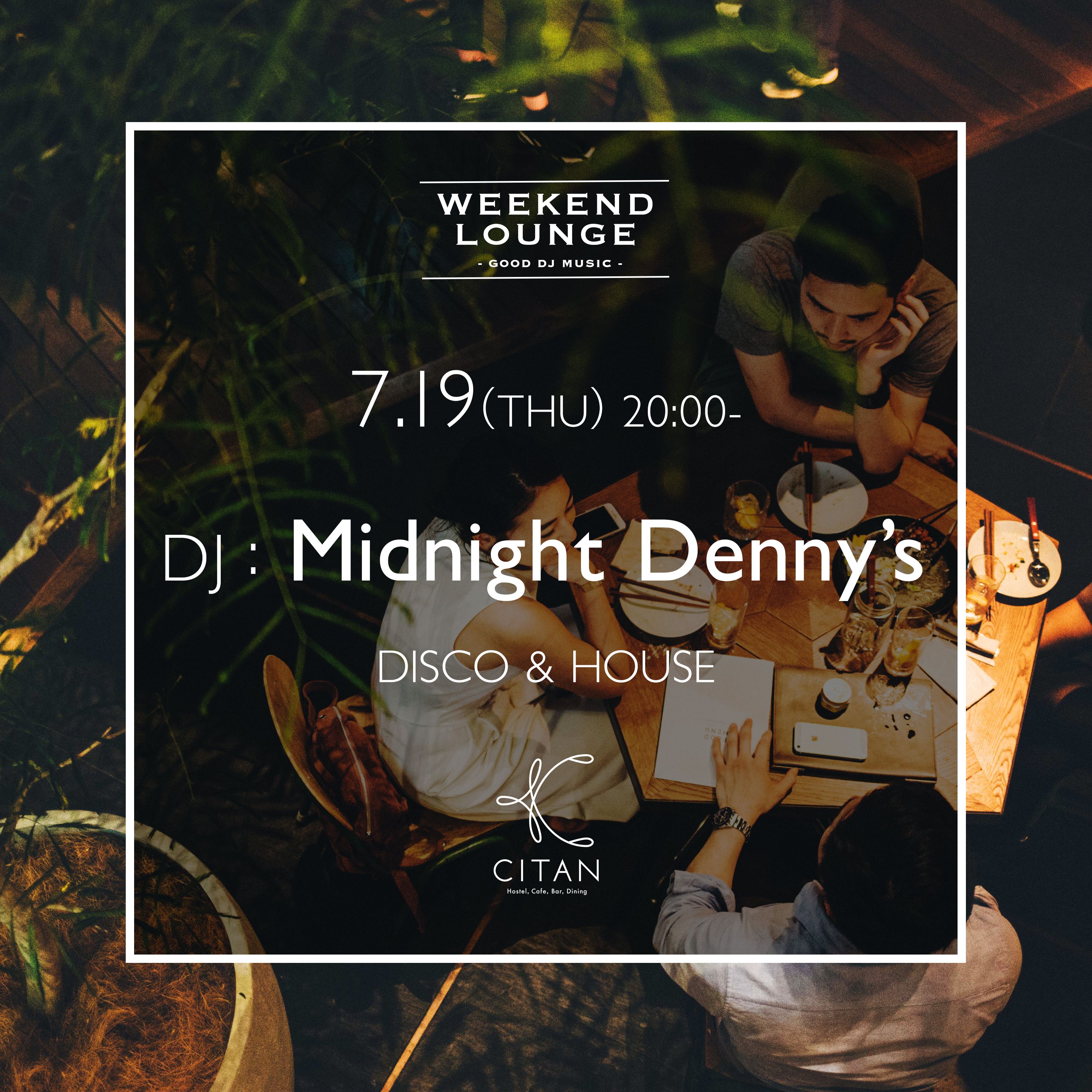 2018.07 19 JUL Weekend Lounge DJs DISCO JAZZ FUNK SOUL HOUSE 0 Shares Facebook Twitter google Line DATE: 2018-07-19 THU OPEN: 20:00 VENUE: PRICE: ENTRANCE FREE LINE UP: Midnight Denny's 7/19 (THU) DJ:Midnight Denny's GENRE:DISCO & HOUSE https://soundcloud.com/user-124894887/dj-lounge-0222-midnight-dennys