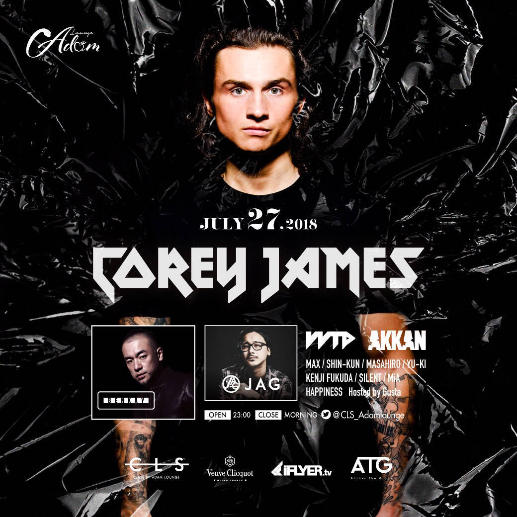 2018.07 27 JUL Corey James CLS BY ADAM LOUNGE HOUSE 0 Shares Facebook Twitter google Line 実券をお買い求めの方はこちらからご購入頂けます。 ¥ DATE: 2018-07-27 FRI OPEN: 23:00 VENUE: PRICE: 前売/ 男性2,500円 女性1,500円 当日/男性3,000円 女性2,000円 (※前売、当日共に税込/別途要1ドリンク) LINE UP: Corey James, BENKAY, JAG, WTP
