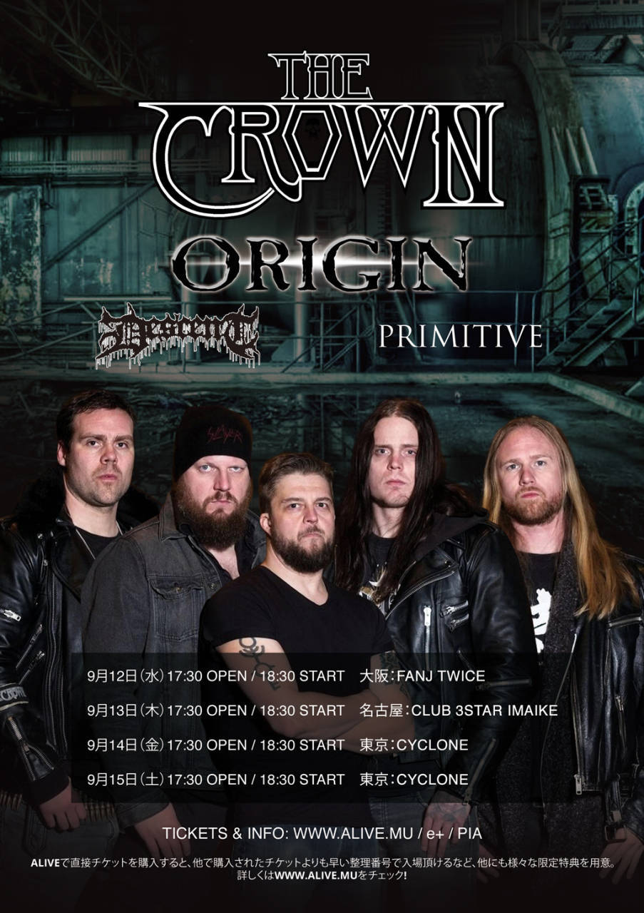 スウェーデンが誇るベテラン・デスメタル・バンド、ザ・クラウンが、アメリカの実力派テクニカル・デスメタル・バンド、オリジンを引き連れた超豪華なラインナップでのJAPAN TOURが決定!サポートアクトとしてオーストラリアからディセント、新たにプリミティヴの参戦も決定!! スペシャルな夜をさらに熱くする!!