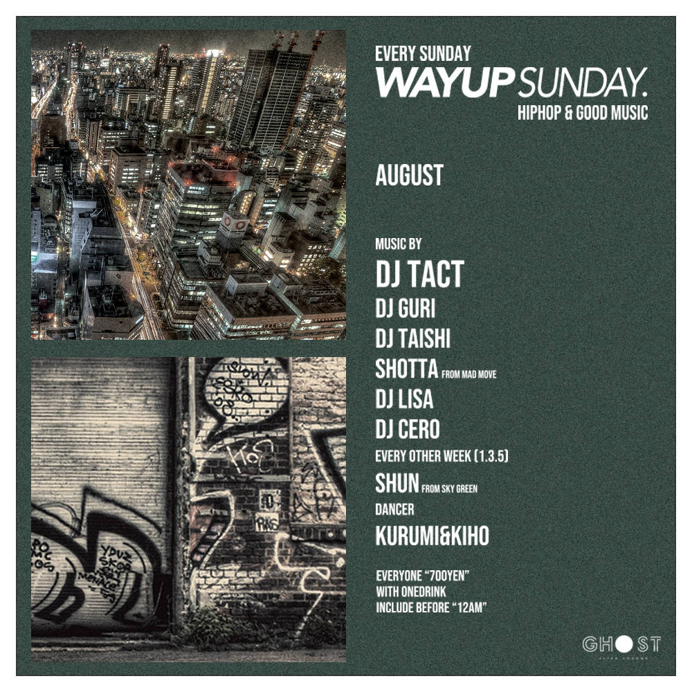 ユース・カルチャーの最先端はアメ村にあり!次世代を担うアクトたちが集い「今が旬」のミュージックを体感するならGhost ultra loungeの毎週日曜日「Way Up Sunday」!