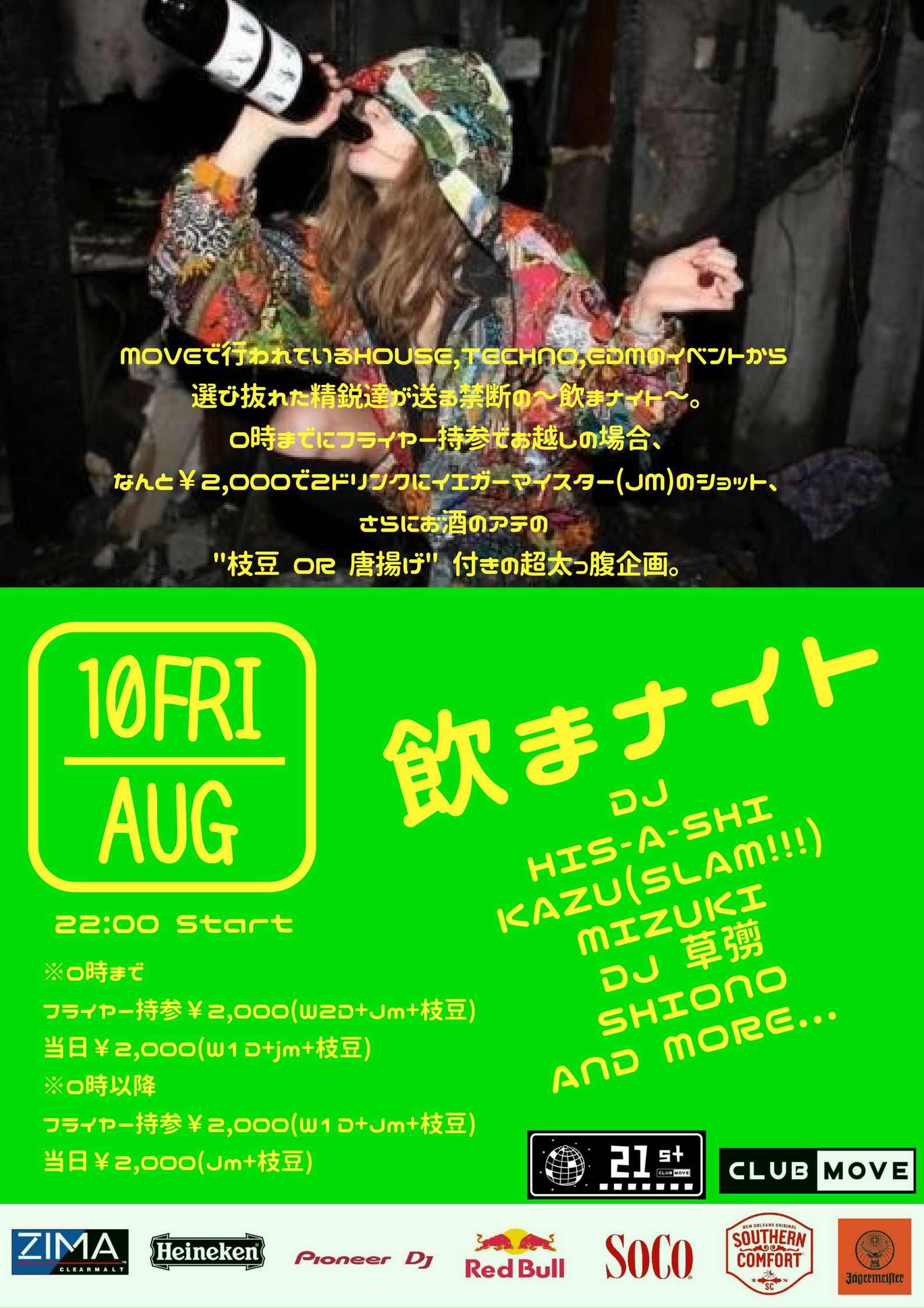 MOVEで行われているHOUSE,TECHNO,EDMのイベントから選び抜かれた精鋭達が送る禁断の~飲まナイト~。