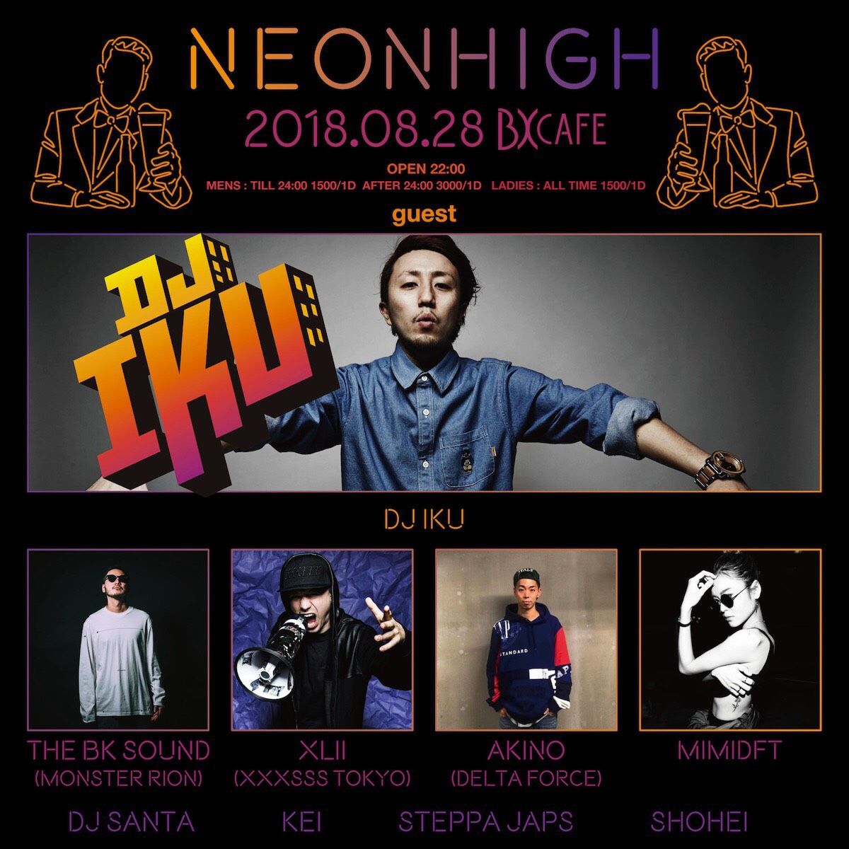 DJ: The BK Sound (Monster Rion), XLII (XXXSSS Tokyo), AKINO (Delta Force), MIMIDFT, BERRY from SIR BRAIN, STEPPA JAPS, Kei fr.298studio