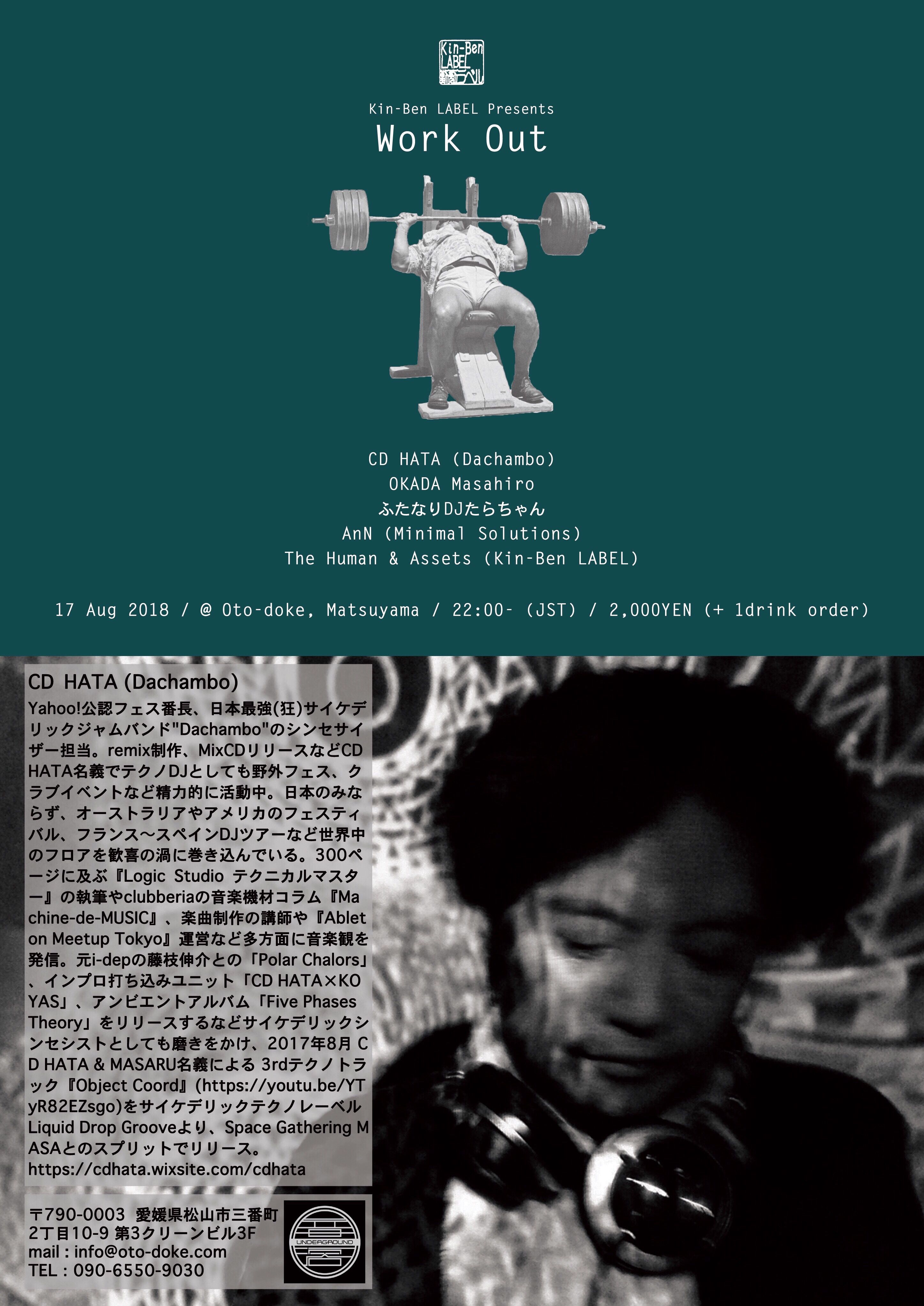 世界中で活動するサイケデリックジャムバンドDachamboからCD HATAさんを迎えてのKin-Ben LABELのレーベルショウケース。テクノど真ん中のパーティーにコスプレイヤー、怪談師としても知られるアニソンDJたらちゃんをぶっ込む。