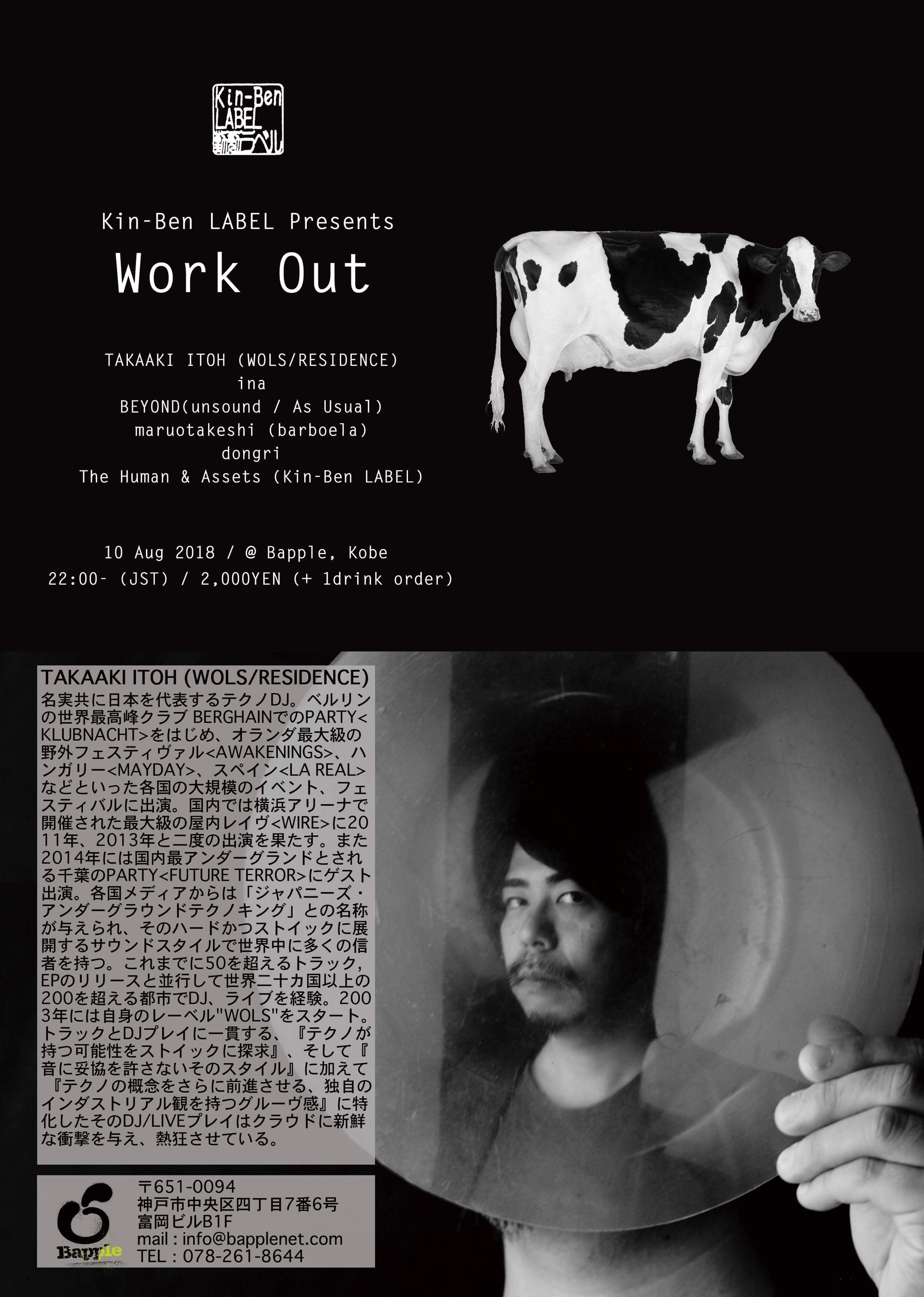当レーベルとの関わりも深い世界的テクノDJ TAKAAKI ITOH を迎え最高音響をインストールする神戸のスタジオBappleにてレーベルショウケース。