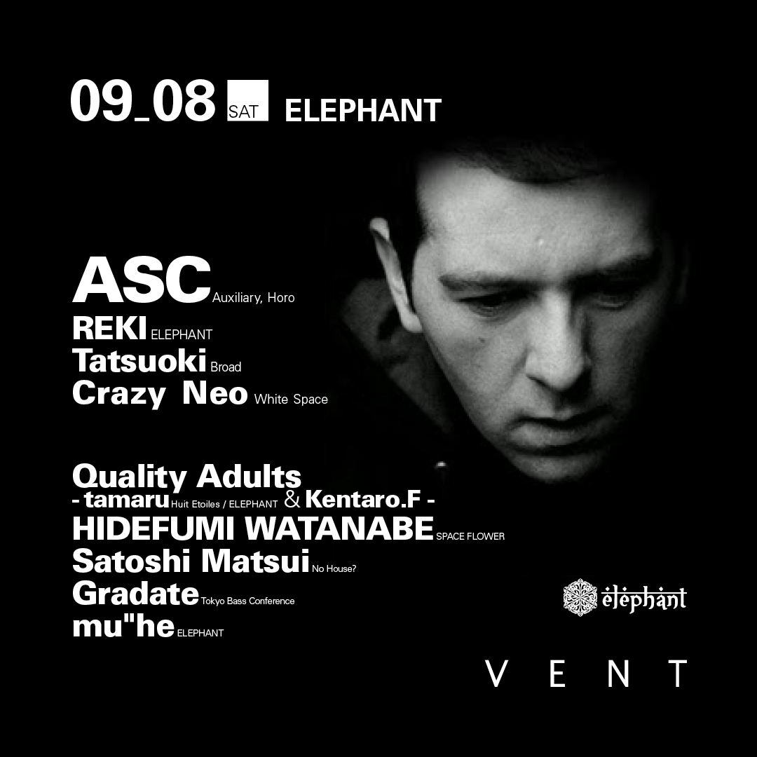 多くの才能が集結する地下テクノシーンでも、頭一つ抜き出たクオリティーのプロダクションを、驚異的なスピードでリリースする鬼才中の鬼才"ASC"が、昨年復活した人気テクノ・パーティーELEPHANTに登場!