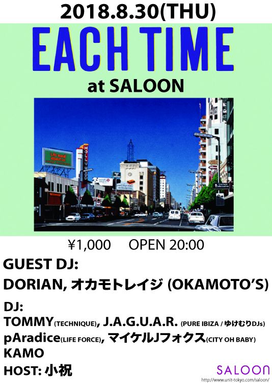 2018.08 30 AUG EACH TIME J-POP 0 Shares Facebook Twitter google Line DATE: 2018-08-30 THU OPEN: 20:00 VENUE: PRICE: ¥1,000 LINE UP: GUEST DJ: DORIAN オカモトレイジ (OKAMOTO'S) DJ: TOMMY(TECHNIQUE) J.A.G.U.A.R. (PURE IBIZA / ゆけむりDJs) pAradice(LIFE FORCE) マイケルJフォクス(CITY OH BABY) KAMO VJ: 310 HOST: 小祝