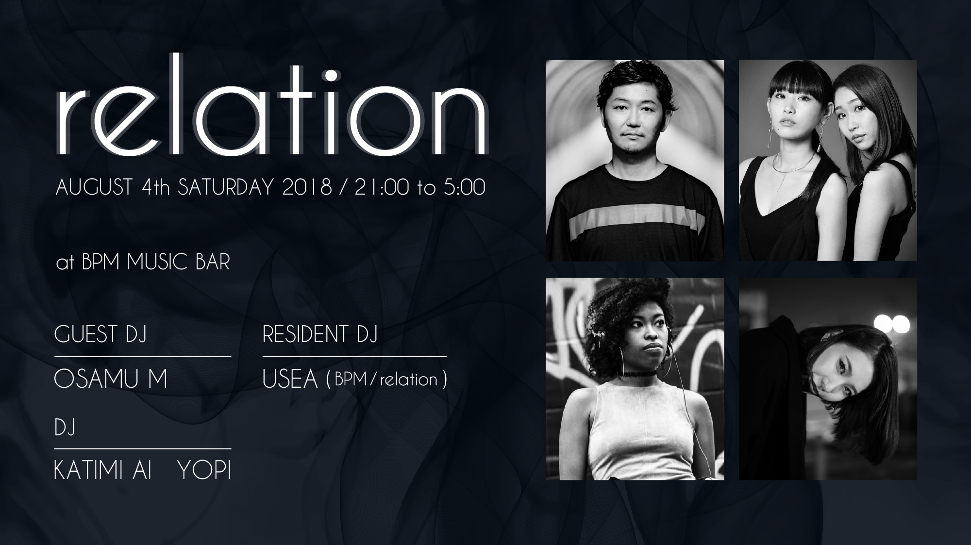 双子djユニットUSEAがレジデントを務めるハウス,テクノパーティ ”relation”。