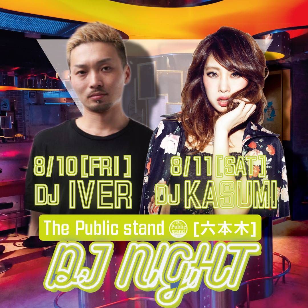今週末、金曜日は六本木の注目株DJ IVER、土曜日は先月に引き続き超人気モデルDJ KASUMIが登場!17時からオープン、DJスタートは20時!23時のDJ終了後もいつもの料金、「朝まで飲み放題!!」
