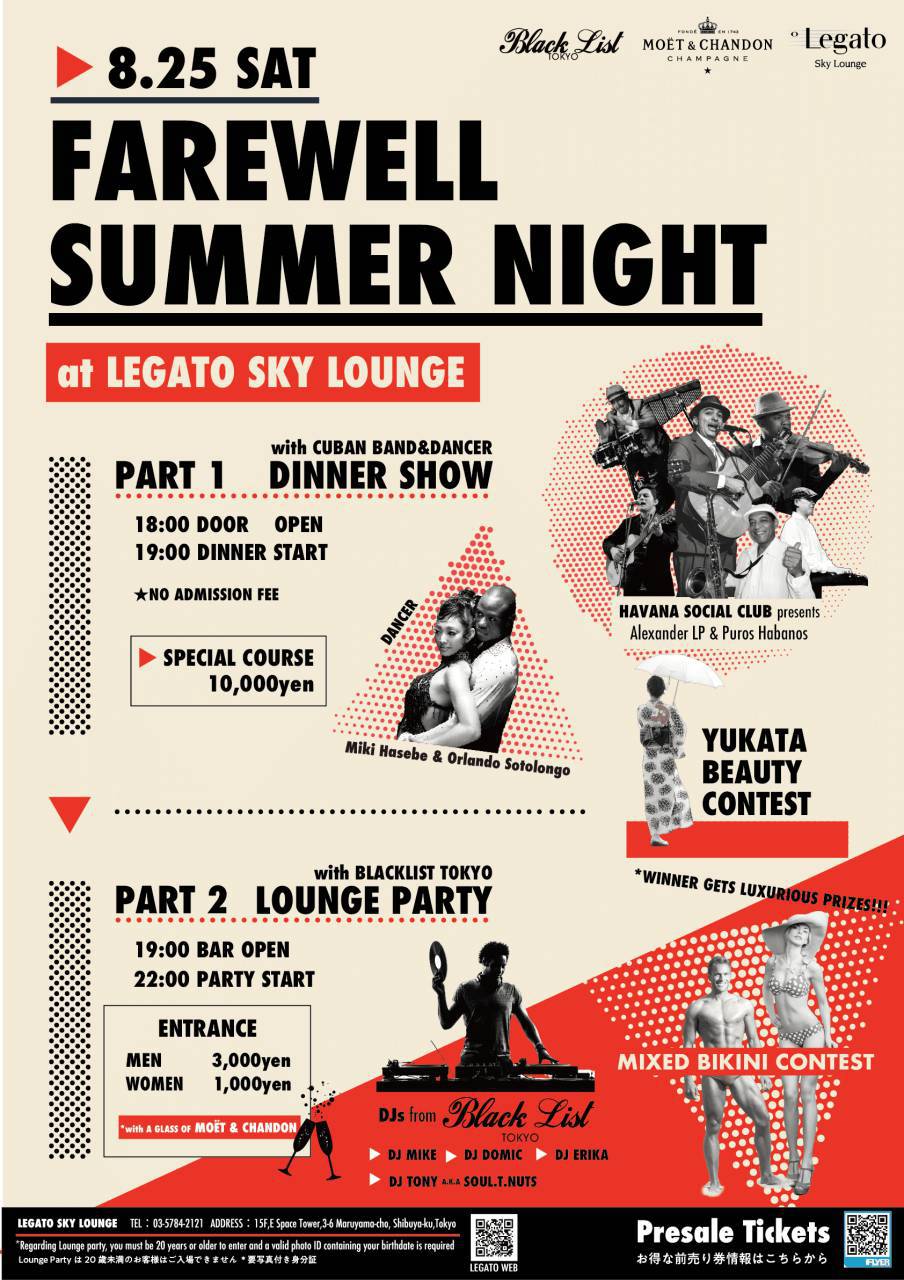 Legato Sky Lounge and Moet Chandon have teamed up once again to bring you our third event, "Farewell Summer Night" on August 25th (Sat)