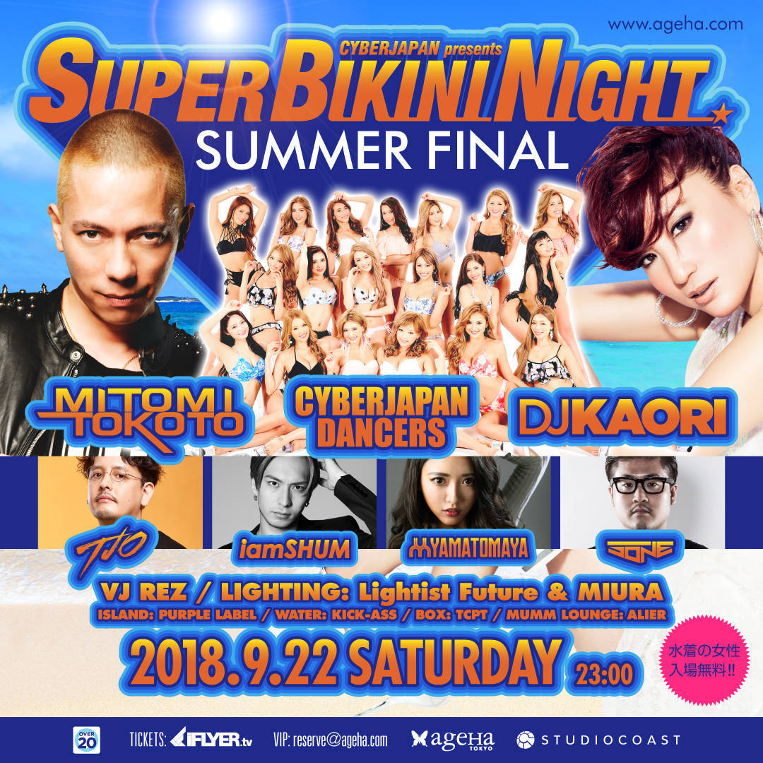 - DOOR 当日 ¥3,500 / U-25 (25歳以下) ¥2,500 / INTERNATIONAL COUPON ¥3,000 / 20TH PASS (20歳の方のみ/All 20 years old) ¥1,000 / BIKINI着用の女性 入場無料 / GA TICKET (一般前売り) ¥2,800 / U-25 TICKET (25歳以下) / ¥2,500 GROUP TICKET (10枚セット) ¥25,000 / EXCITING TICKET ¥5,000