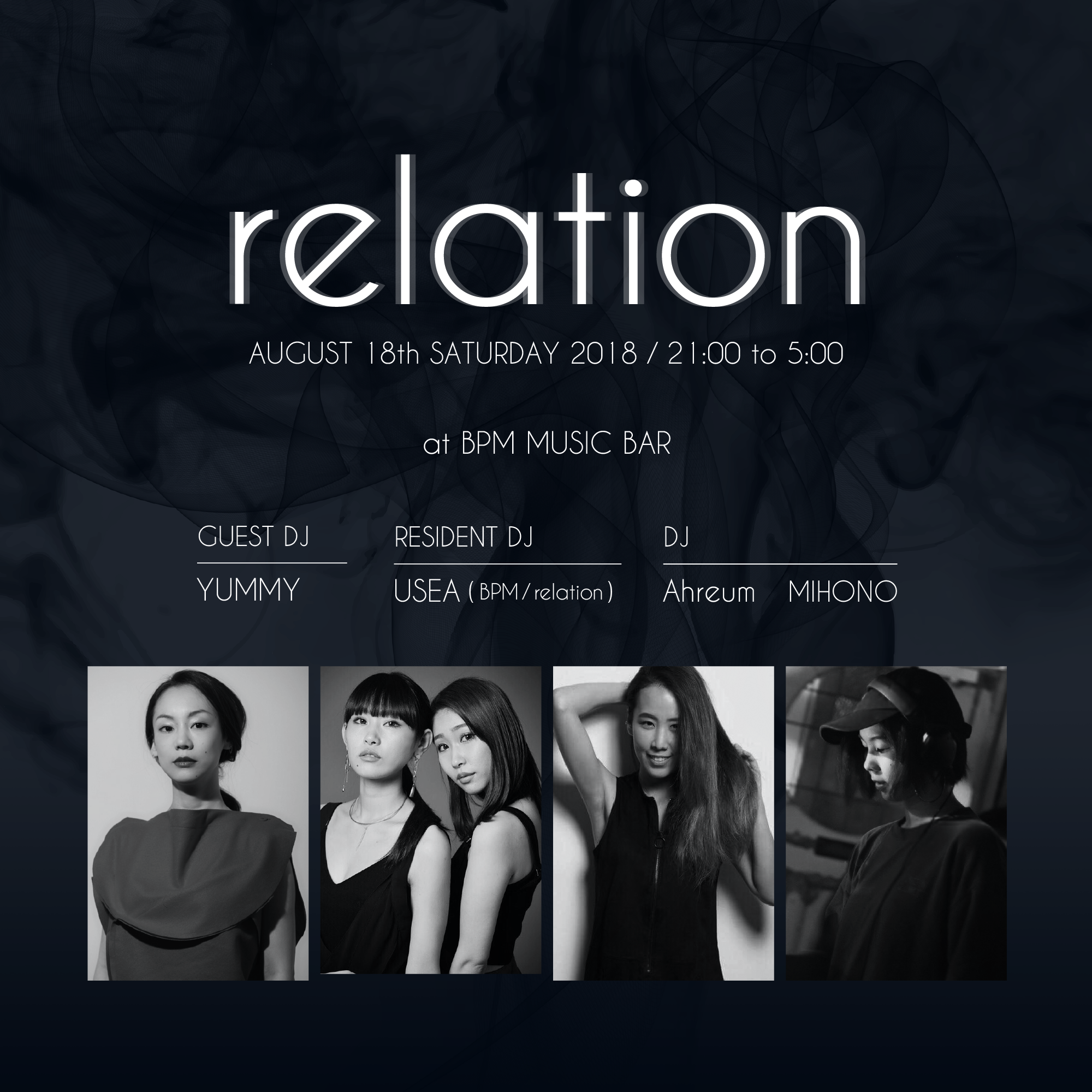 今回のguestに国内だけでなく世界を股にかけ活躍し、日本のシーンにおいて多大な影響を与えてきたYUMMYの出演が決定!更に、韓国出身で安定感のあるグルーブに定評のあるAhreum、BPMから初登場のMIHONOが登場。
