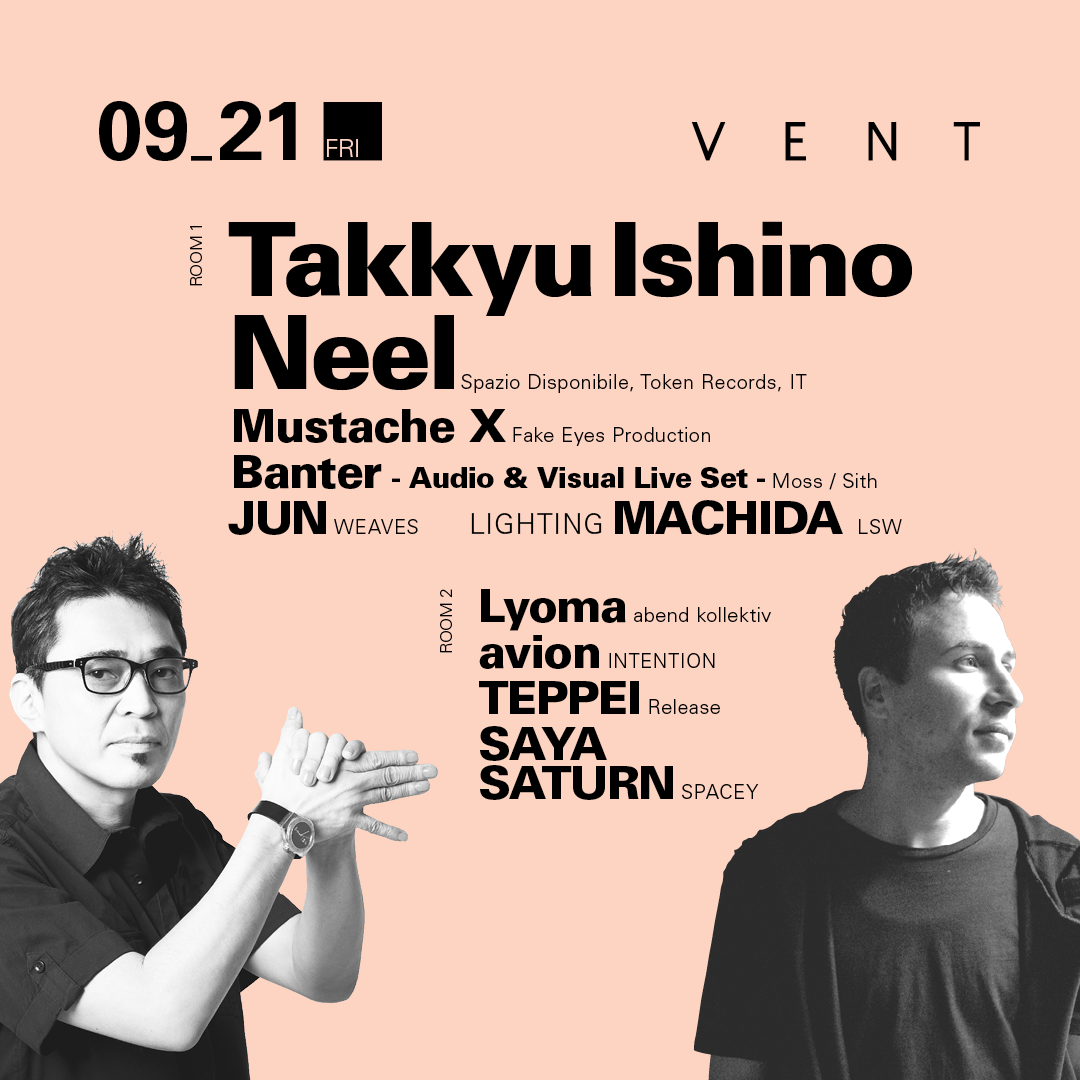 もはや説明不要、数々の伝説とともに日本にテクノを根付かせたレジェンド 石野卓球と、Donato Dozzyと共にVoices From the Lakeとしても活躍するNeelが9月21日にダブルヘッドライナーでVENTへ登場!