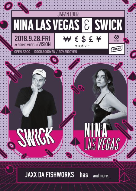 一人目は人気フィーメールDJ、NINA LAS VEGAS。彼女はオーストラリアの国営放送局に自身の番組を持ち、オーストラリアのアンダーグラウンドシーンと世界のシーンとの架け橋になる存在として活躍している。二人目はNinaと楽曲コラボ経験を持つSWICK。人気レーベル、Mad Decent, Fools Gold, Nice Age, Main Course, Enchufada, Secret Songs, Nest HQ等よりリリースを重ね、世界中の音楽ファンから支持されているプロデューサー・DJである。
