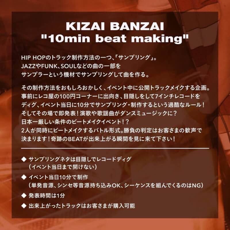 AKAIのサンプラーマシン「MPC」を始め、様々な機材や楽器を持ち込んで10分の間に即興でビートメイキングをする企画を行うなど、巷で話題になっているパーティー「機材バンザイ」。