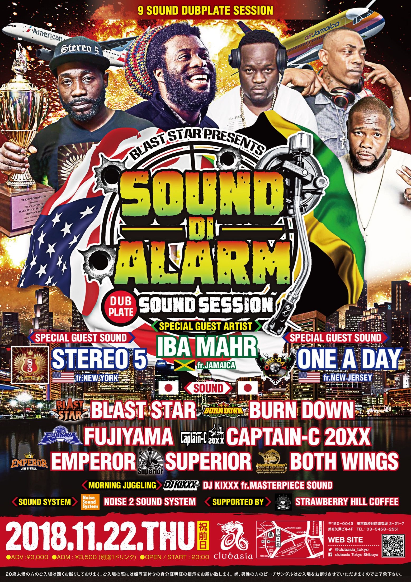 2018.11 22 NOV SOUND DI ALARM REGGAE 0 Shares Facebook Twitter google Line 実券をお買い求めの方はこちらからご購入頂けます。 ¥ DATE: 2018-11-22 THU OPEN: 23:00 VENUE: PRICE: 当日:¥3500 前売り:¥3,000 (※別途ドリンク代¥600) LINE UP: SPECIAL GUEST ARTIST: ★IBA MAHR from JAMAICA SPECIAL GUEST SOUND: ★STEREO 5 from NEW YORK ★ONE A DAY from NEW JERSEY Sound (A to Z) ・BLAST STAR from TOKYO ・BOTH WINGS from TOKYO ・BURN DOWN from OSAKA ・CAPTAIN-C 20XX from YOKOHAMA ・EMPEROR from AMAGASAKI ・FUJIYAMA from AICHI ・ONE A DAY from NEW JERSEY ・STEREO 5 from NYC ・SUPERIOR from OSAKA ・Morning Jugglin by DJ KIXXX from MASTERPIECE SOUND ・Early Warm: MARCUS, TADA-B,KENJI fr RISPEC JAM, SHIZRY ・Sound Sytem: NOISE 2 Sound System ・Shop: CULTURE SHOCK ・Food Vending by KING JERK ・Support by @strawberryhill_coffee 2018.11.22 (Thu) 祝前日 at club asia (Tokyo, Japan) @clubasia "SOUND DI ALARM" 9 Sound Dub Plate Session! 海外、日本の最高なアーティストが集結~ そして、 スペシャルゲストにジャマイカより、#IBA MAHR が出演決定!!! 必ずや熱いSESSIONになるので、SOUND, DUB, CLASH好き・レゲエ大好き!な皆様お待ちしてます!