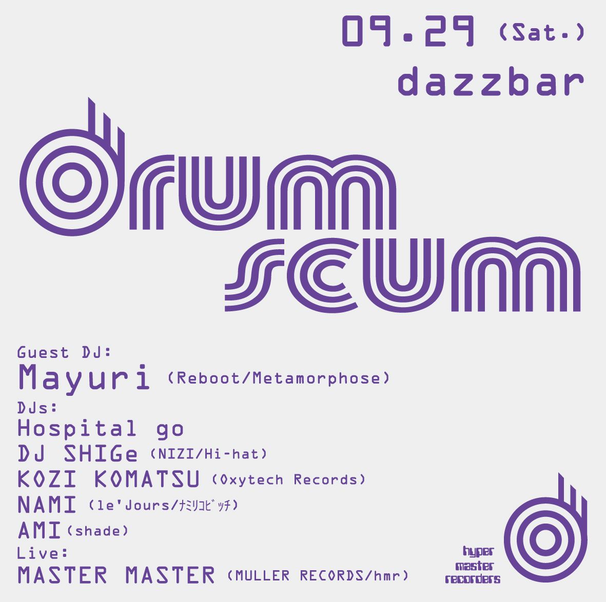 静岡dazzbar発のコアでカルトなテクノパーティー”drumscum(ドラムスカム)”の第5回。