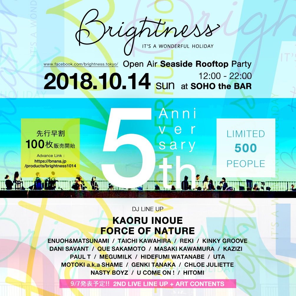 “It's a wonderful holiday”をコンセプトに2013年にスタートした“Brightness”も、多くのミュージック&アートラバーの皆様のお力添えにより5周年を迎える事となりました。これまでの多大なるサポートの数々、心より御礼申し上げます。