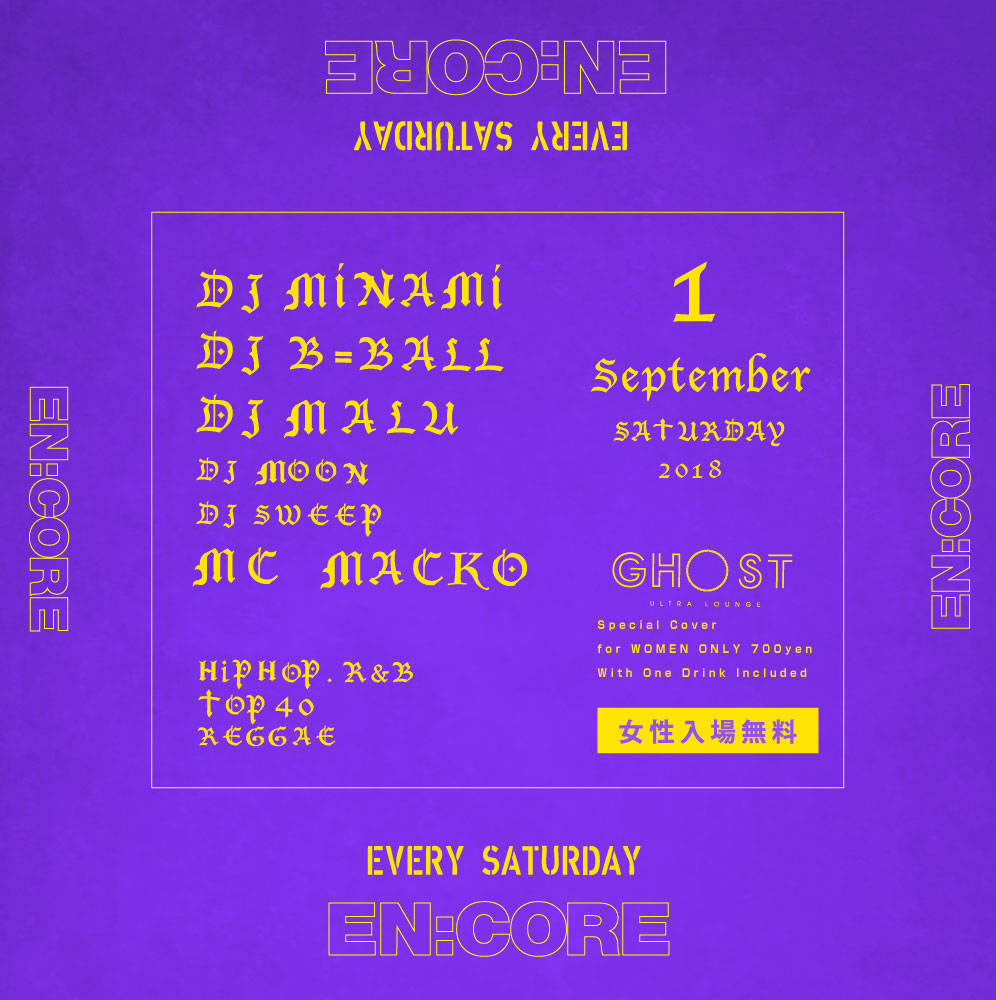 2017年現在も常時600人を超える集客で賑わう毎週土曜日、Ghost ultra loungeの看板イベント「EN:CORE」(エンコア)!