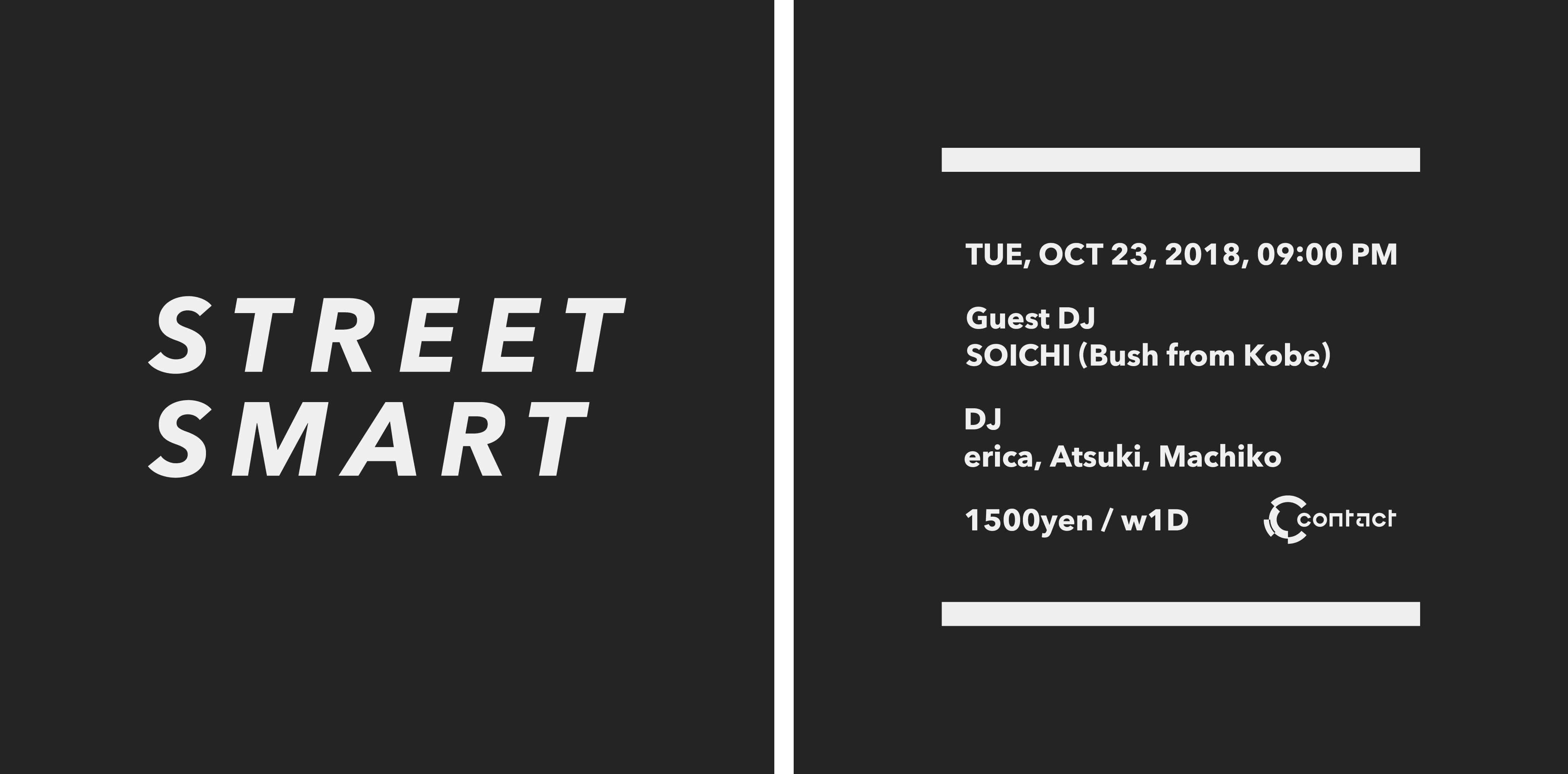 2018年7月からは、オーガナイザーのMachikoと交流が深く都内のクラブを中心に活動するAtsukiも加わり、渋谷Contactにヴェニューを移す。Contactで2回目の開催となる今回は、神戸troopcafeで最も永きに渡り開催されるハウス&テクノパーティBushのレジデントDJ、SOICHIをゲストに迎えての開催。