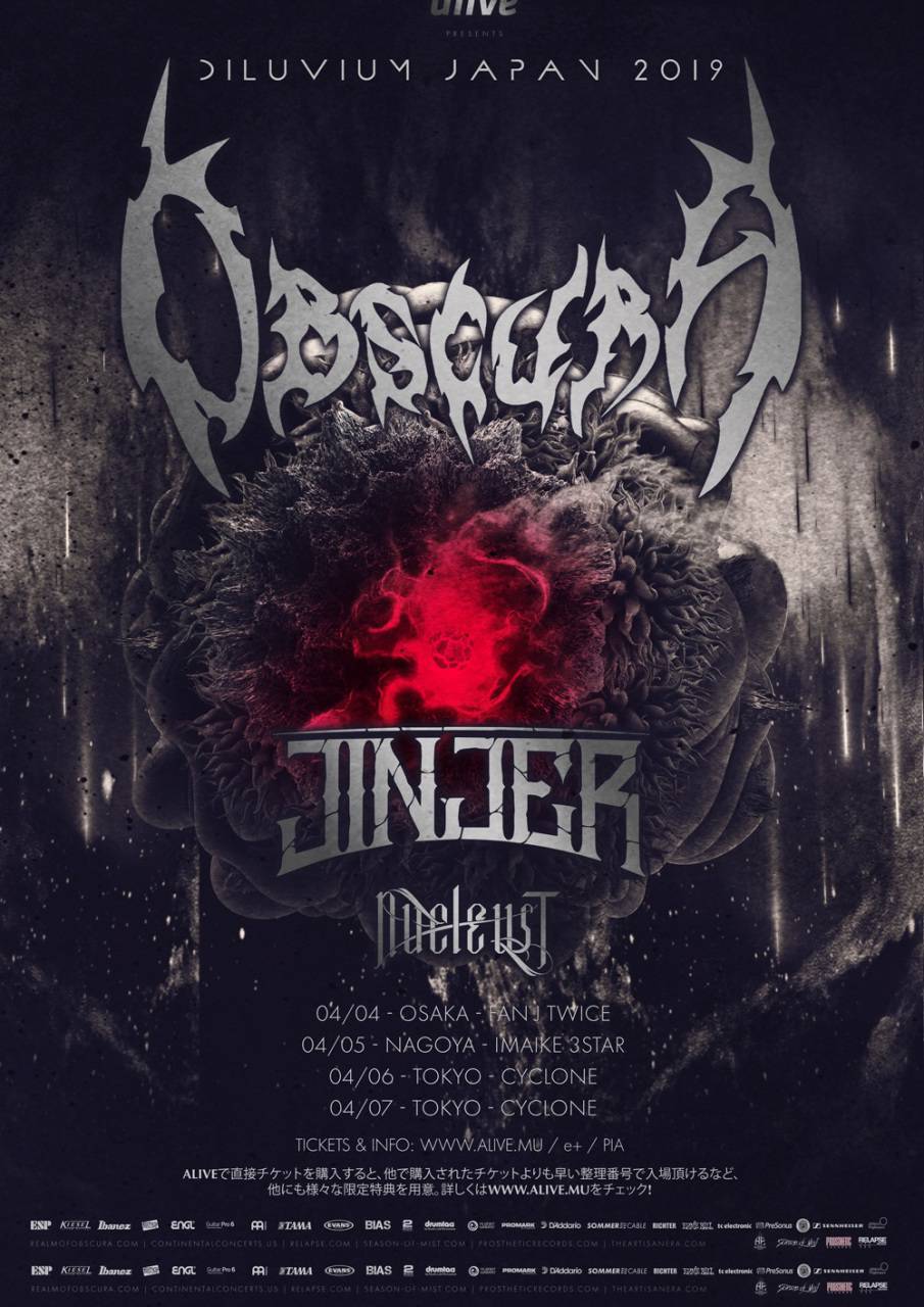 ジャーマン・テクニカル・デスメタルの君主オブスキュラ、5thアルバム『Diluvium』の発売を記念したJAPAN TOURを開催!! 2018年に行われた前作のツアーも各地で大反響を呼び、日本でもたくさんのファンを魅了した。そんな彼らが新作を引っさげて帰ってくる!! 今回のツアーに帯同するのはウクライナ出身のメタルコア・バンド、ジンジャー (Jinjer)。アーチ・エネミーとヨーロッパをツアーするなど、話題の彼らが遂に初来日を果たす...!!