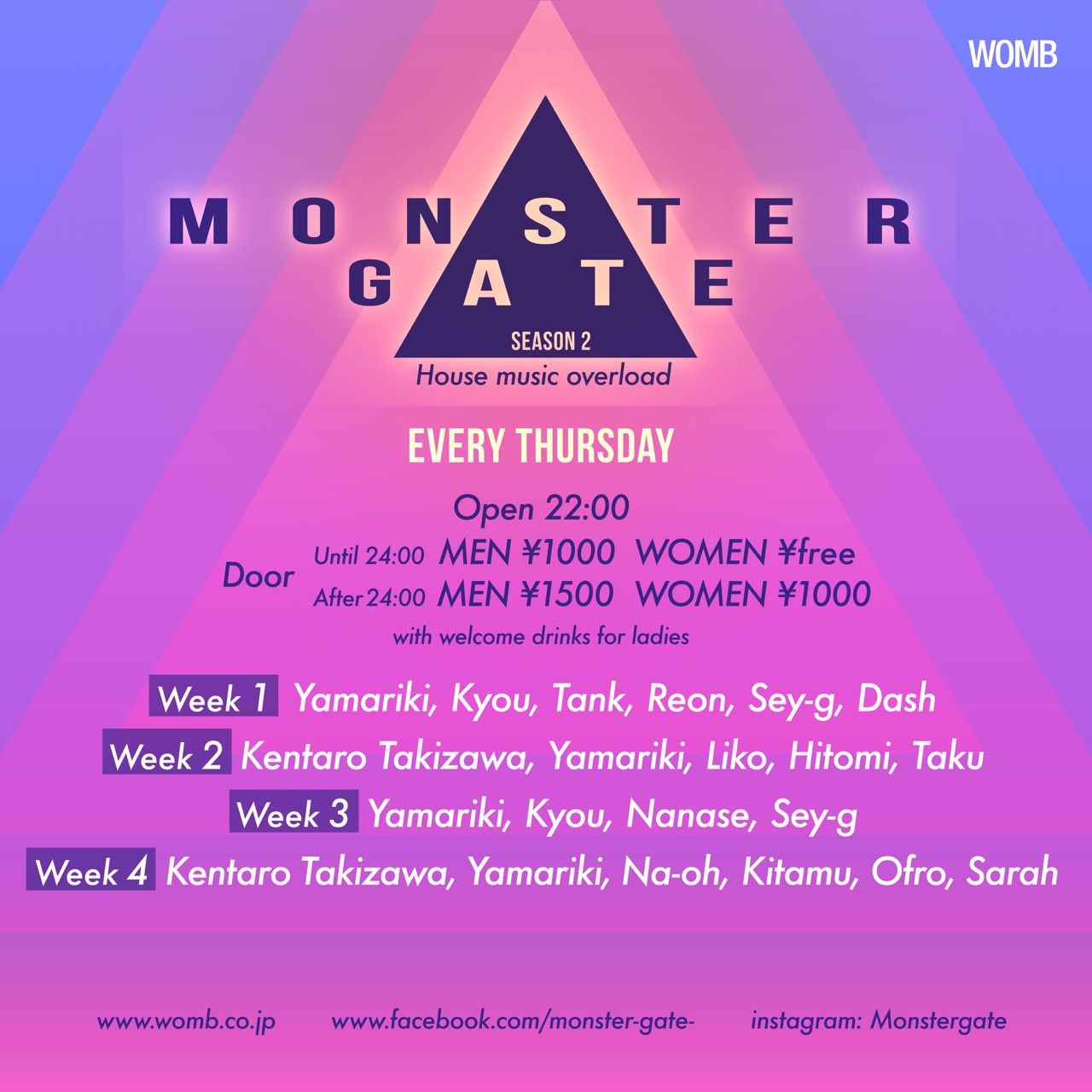 平日の楽しみ方を新たに提案するパーティー「モンスターゲート」が WOMB という最高の venue で2017年に産声をあげた。