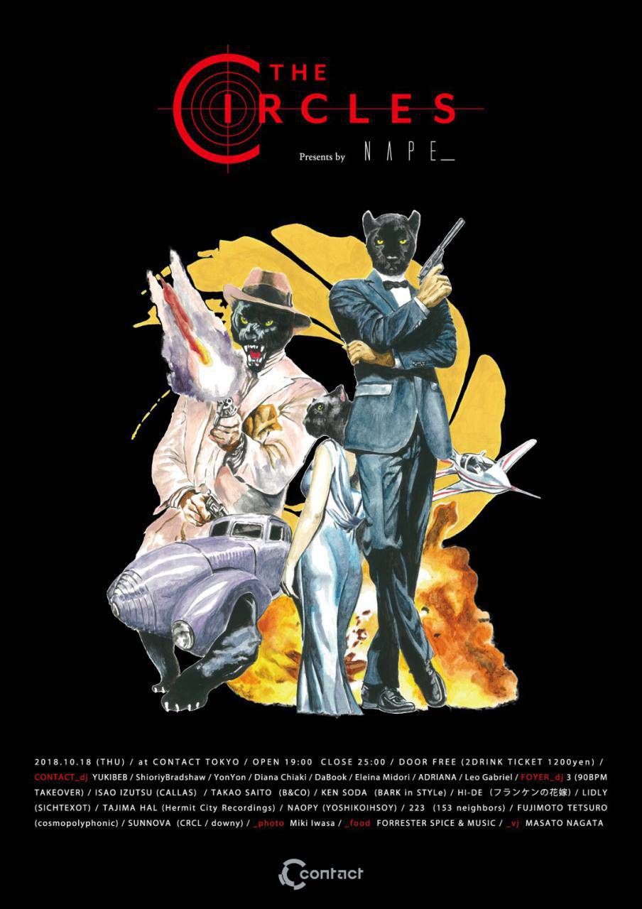 2016年にユニセックスファッションと音楽を軸としたクリエイター集団としてスタートしたNAPE_。コンセプトEP「BLOW BACK」がiTunesエレクトロニックチャート6位を獲得。現在は日本、イギリス、イタリア、中国などにも展開している。2018年、"THE CIRCLES"というコンセプトを掲げ、インスタレーションパーティをContactにて開催する。古き良き'90sのジャンルレスなシーンと現代の人種、国境、性別を超えたボーダレスなマインドを融合する。世界的にもその名を響かせているSOULECTION所属のYUKIBEB、日本を代表しアジア各国でもプレイ経験のあるShioriyBradshaw、韓国と日本の架け橋として、精力的な活動をしているYonYonなど、豪華なラインナップが集結。映像クリエイターのMasato Nagataも加わり、どんな融合を果たすのか期待してほしい。