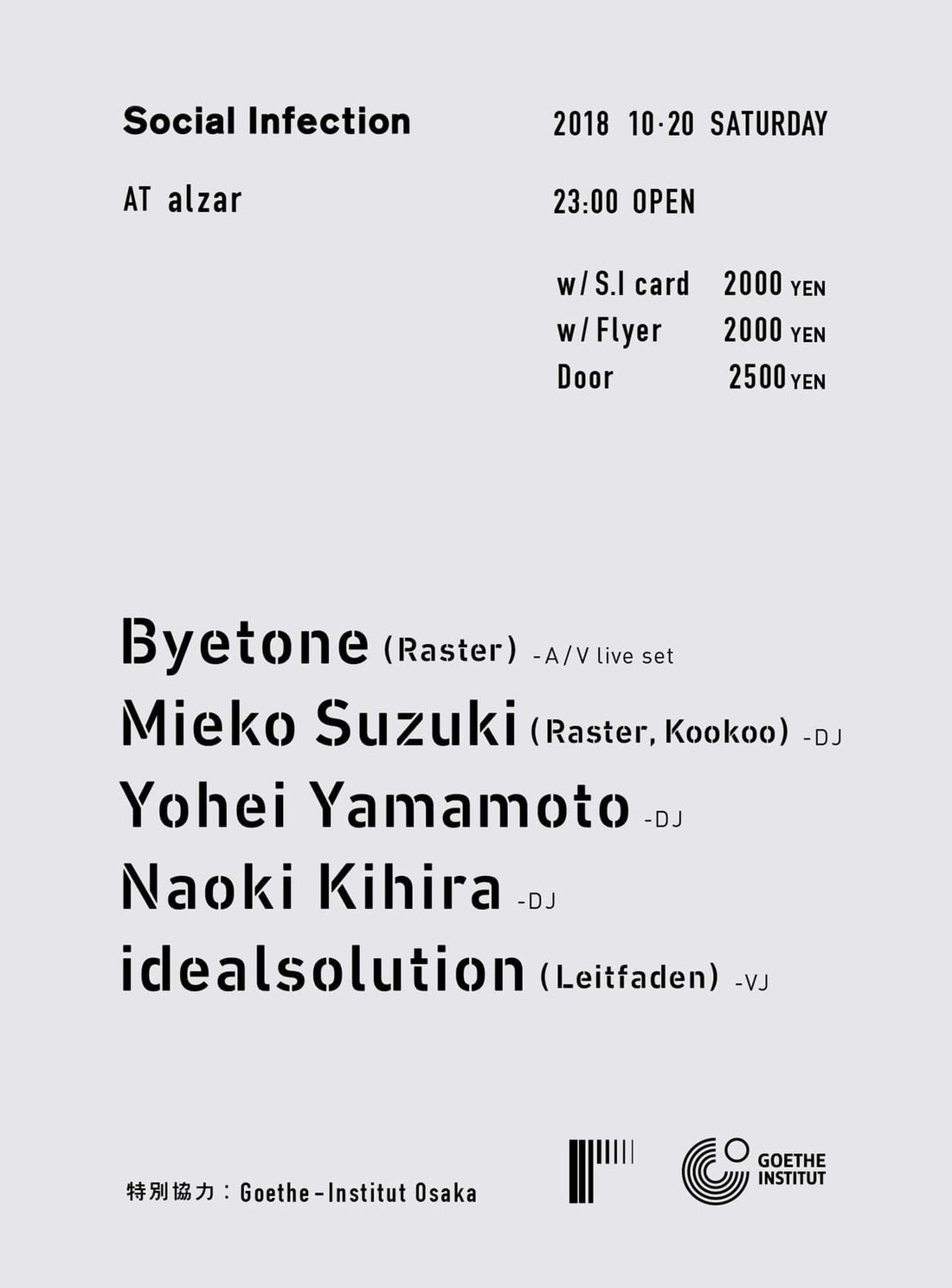 - 2500yen at door (Nodrink) 2000yen S.I member, W/flyer, Facebook Discount(Nodrink)