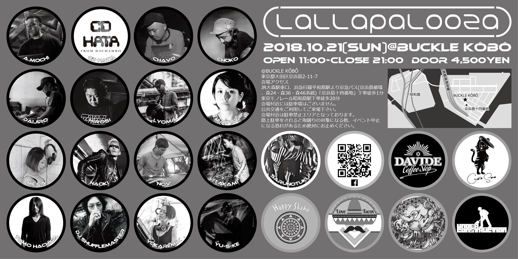 2008年にビーチパーティからスタートし、2014、2015年は京浜工業地帯の川崎市ちどり公園で野外パーティとして開催していたLALLAPALOOZAが2017年より大田区・京浜島の鉄工所を利用した「BUCKLE KOBO」にてデイパーティとして開催。