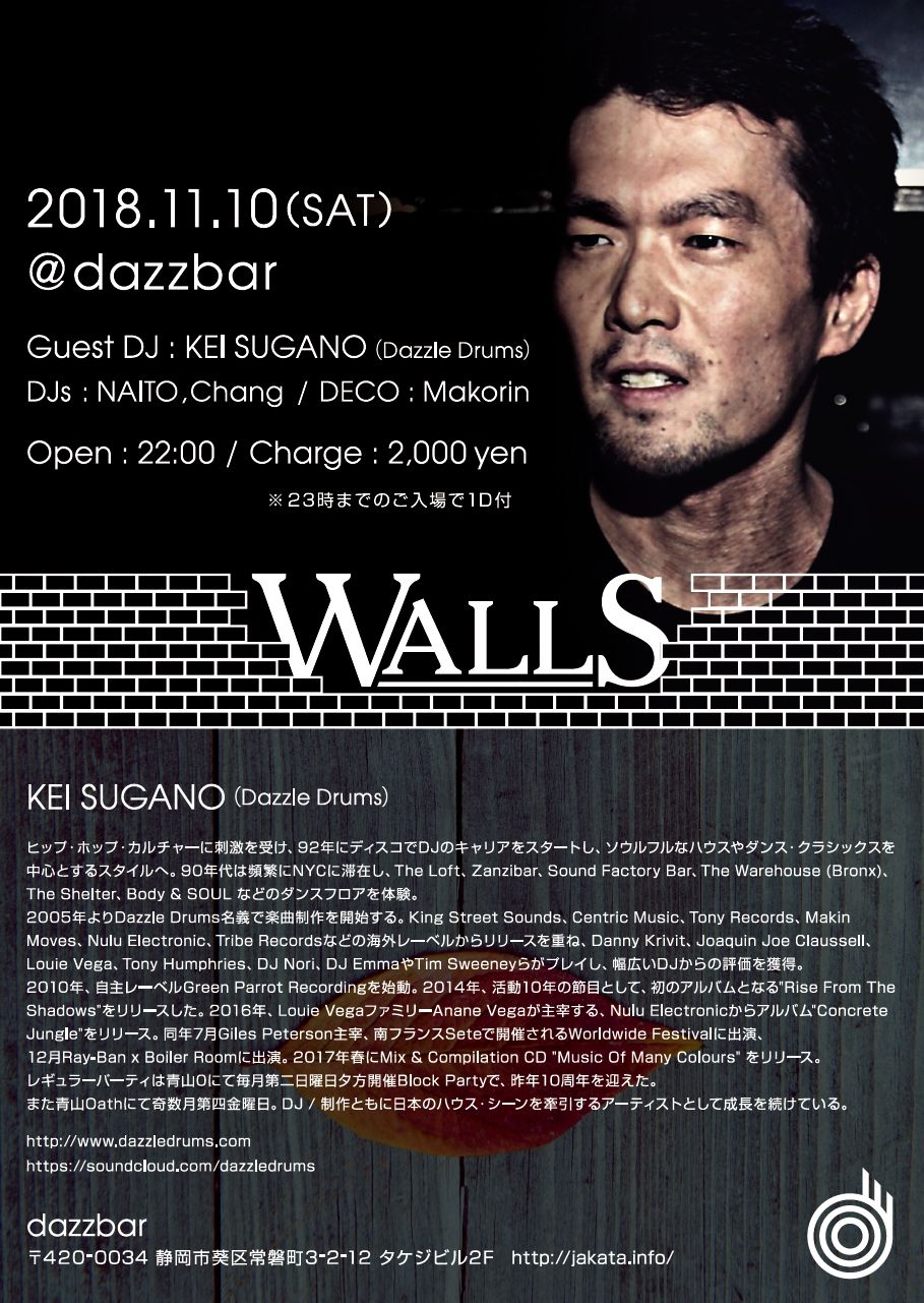 YSK、AONO、NAITO、Changにて、2016年6月よりdazzbarにて定期開催しているWALLS。