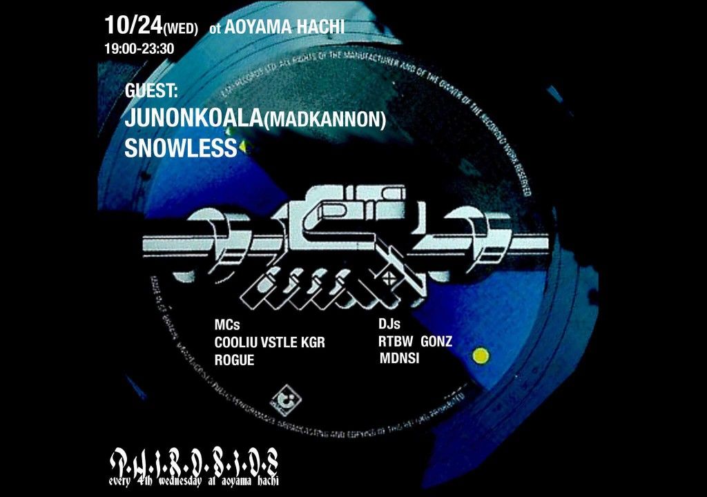 2018.10 24 OCT THIRD SIDE HIPHOP SOUL ALLMIX 0 Shares Facebook Twitter google Line DATE: 2018-10-24 WED OPEN: 19:00 VENUE: PRICE: DOOR: First Drink ¥1000 LINE UP: 《every 4th Wednesday》 ■GUEST DJ JUNONKOALA (MADKANNON) SNOWLESS ■LIVE COORIU VSTLE KAGURA ROGUE ■DJ RTBW GONZ MDNSI