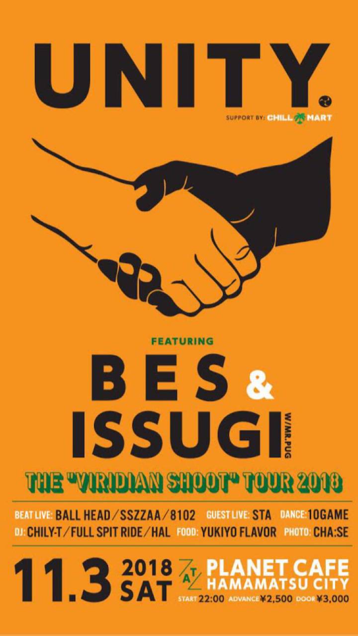 @TheChillMart presents UNITY feat. BES & ISSUGI w/ MR. PUG “THE VIRIDIAN SHOOT” TOUR 2018