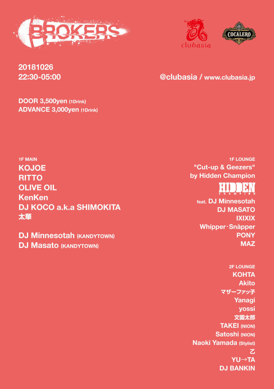 - ADV TICKET: 3000YEN/1D [clubberia, iFlyer] DOOR: 3500YEN/1D