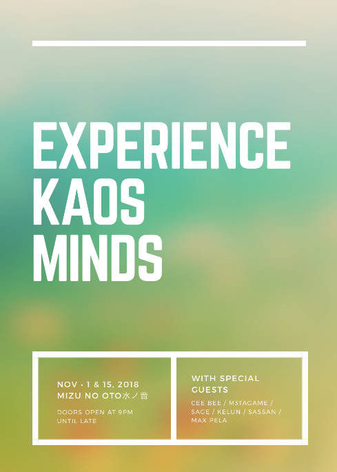 Experience Kaos Minds is a musical showcase that brings all the dopest DJ's around Kansai to display that technical and musical skills of DJ's. Hell, its the dopest underground event in Osaka, Japan. The newest and dopest DJ's. And the music is unbelievable on fire. Stop by every 1st and 3rd Thursday and rock with DJ Cee Bee at Club Mizu no Oto.