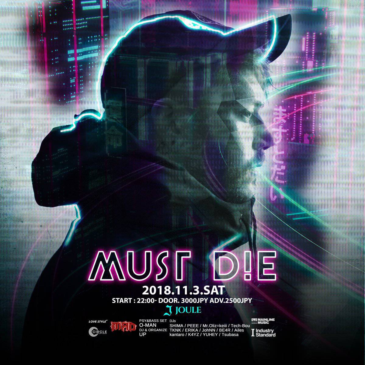 関西BASS MUSIC CREW【MAD】がDubstep、そしてPower Houseの名門レーベルとして名高いSKisM主宰のレーベルNever Say Dieとサインした「MUST DiE!」を招聘!MUST DiE!がSkrillexの主宰するOWSLAから2014年にドロップしたアルバム、‘Death & Magic’は、Beatportのチャートを即座に席巻し、リードとなったシングル「Gem Shards」は、4週間にわたってトップの座を保持し続ける大ヒットを記録。Skrillexも好んでかけるVIPsは言わずと知れた『MUST DiE!』のヒットチューンだ!そんな彼のプレイを11/3に体感せよ!