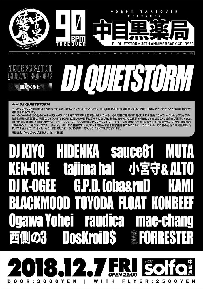 90BPM TAKEOVER presents 中目黒薬局 DJ QUEITSTORM 30th ANNIVERSARY〆の会