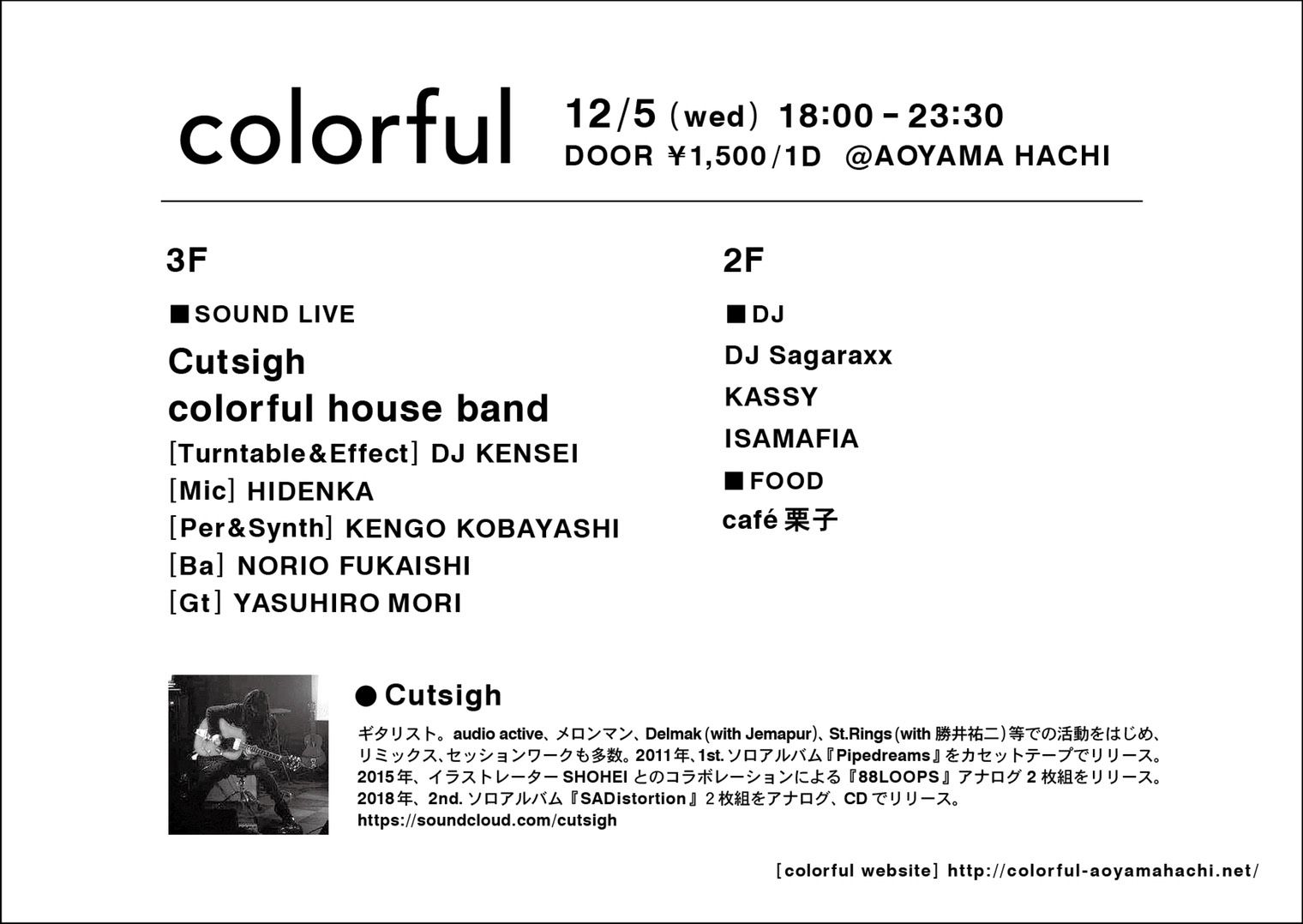 毎月第1水曜日、青山蜂にて行われている『colorful』にて毎回SOUND LIVEを繰り広げているパーティーの『house band』と言える面々。