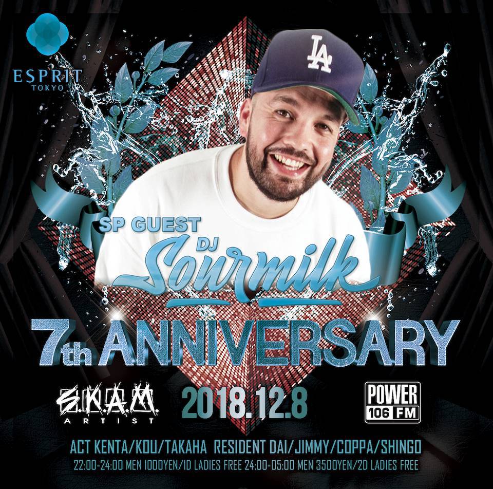 ロサンゼルスの人気ラジオ番組『POWER 106』にレギュラー番組を持ち、ラスベガスの超人気クラブJEWELでもレジデントを務め最近ではTYGAのオフィシャルDJにもなったS.K.A.M. ARTISTのトップ『DJ Sourmilk』のラスベガス、ロサンゼルスで活躍する彼がESPRITの7周年に華を添えるでしょう