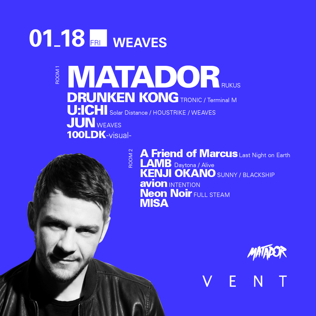 今回MATADORを迎えるのは、2013年のローンチから数々のインターナショナル・アーティストを招聘し、メロディックなテクノサウンドを東京シーンに提唱してきた”WEAVES”。現在進行形のヨーロッパスタイルのテクノ/ハウスを提唱するWEAVESとMATADORの化学反応にも期待したい。
