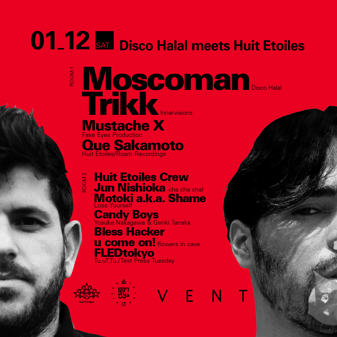 最近では海外での活躍も目覚ましいQue Sakamotoが率いる国内屈指のNu DiscoパーティーHuit Etoilesが1月12日に開催決定!モダンエスニックの革命家Red AxesやAcid Arabらと共に一大ムーヴメントを築き上げたMoscomanと、DixonやÂmeでお馴染みInnervisionsからのリリースも話題のTrikkがダブルヘッドライナーで登場し、スペシャルなショーケース、Disco Halal meets Huit Etoilesを開催!!