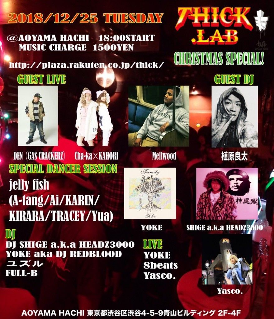 青山蜂にて偶数月第四火曜日に行われているPARTY、東京発UNDERGROUND HIPHOP EVENT thick.lab