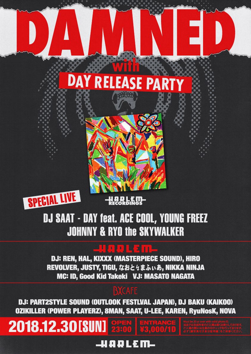 DAMNED with ‘DJ SAAT - DAY feat. ACE COOL, YOUNG FREEZ, JOHNNY & RYO the SKYWALKER’ RELEASE PARTY